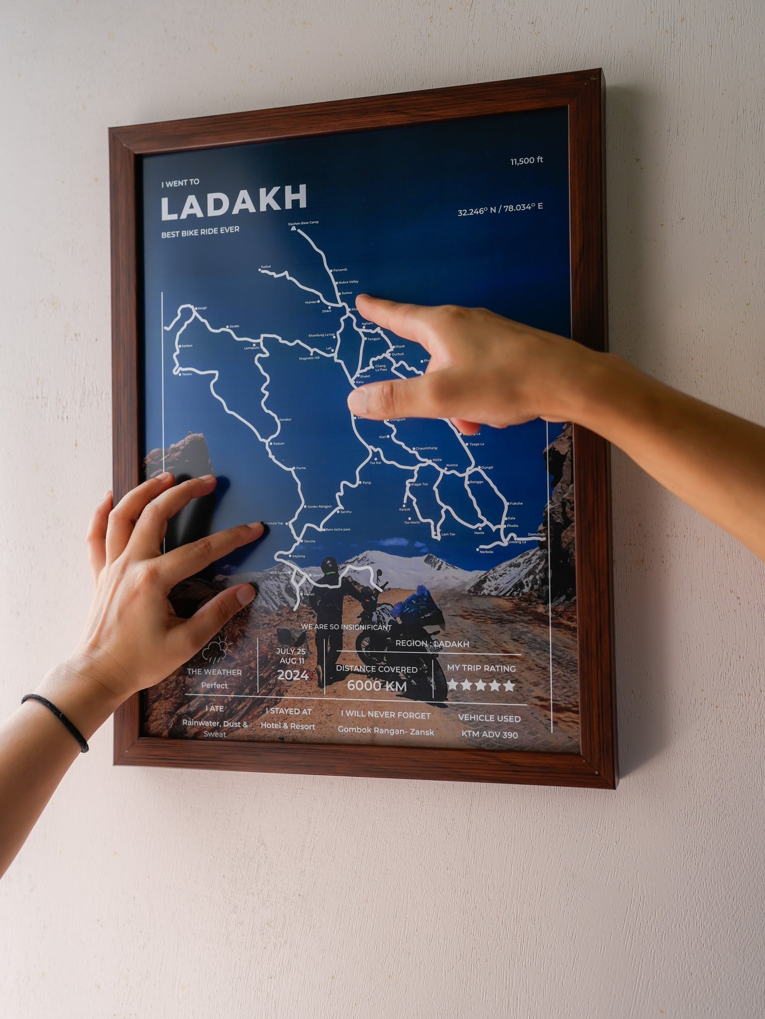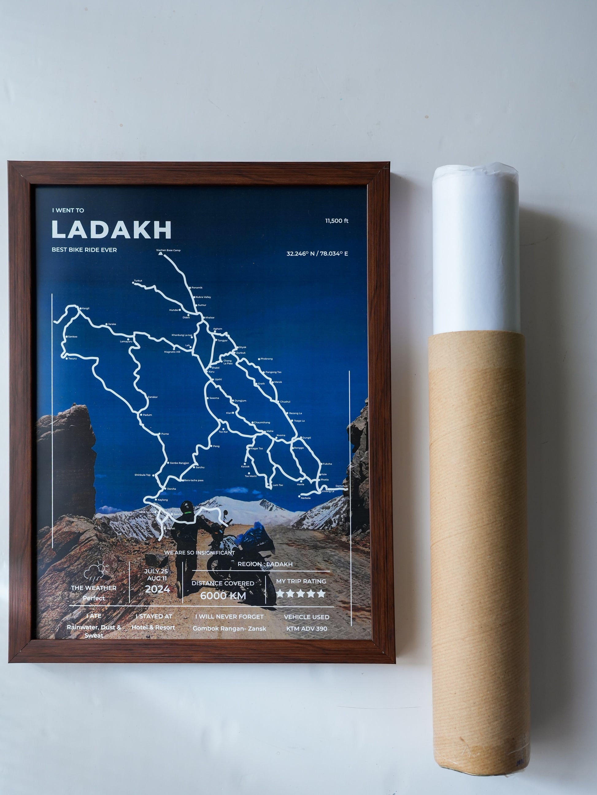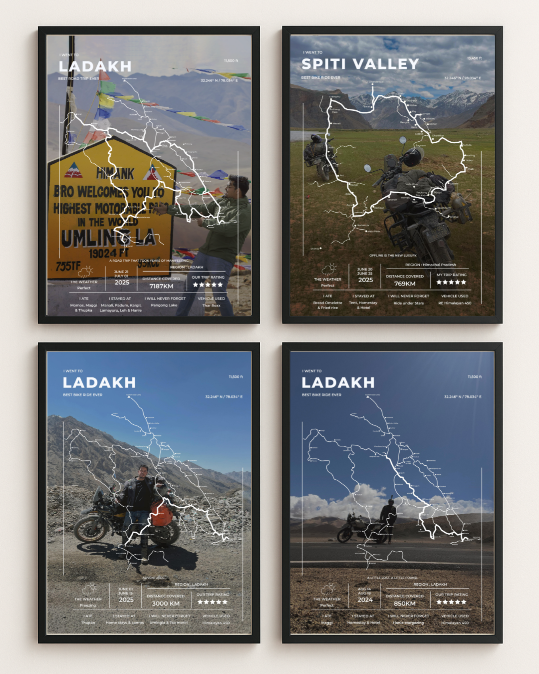 Frame Your Road Trip is a personalized framed poster that captures your travel story. It includes your travel route, dates, photos, and trip highlights โ all beautifully designed and ready to hang.